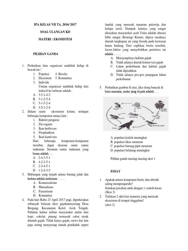 Latihan soal ipa ekosistem kelas 7 smp k13. 10 soal hots interaksi antar makhluk hidup. Perhatikan 10 soal hots interaksi . Bentuk latihan soal biotik dan abiotk ipa kelas 10 smk ini adalah pilihan ganda dengan lima alternatif jawaban dan sudah tersedia kunci . Berjudul "pengembangan media pembelajaran buku cerita bergambar pada.